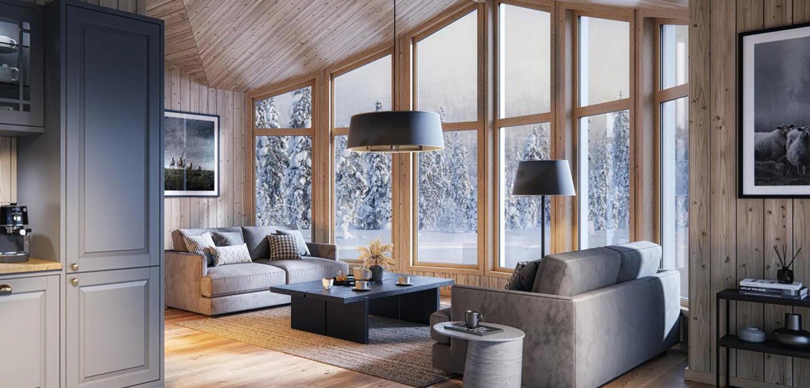 Hytta har et bruksareal på 90 m² og er ideell for familier. Med Panorama får du en hytte som virkelig skiller seg ut. Det spesielle tak- og vindusdesignet i stuedelen gir Panorama en unik karakter. De store vinduene i front gjør det enkelt å glede seg over utsikten samtidig som de sørger for rikelig med naturlig lys i stuen.