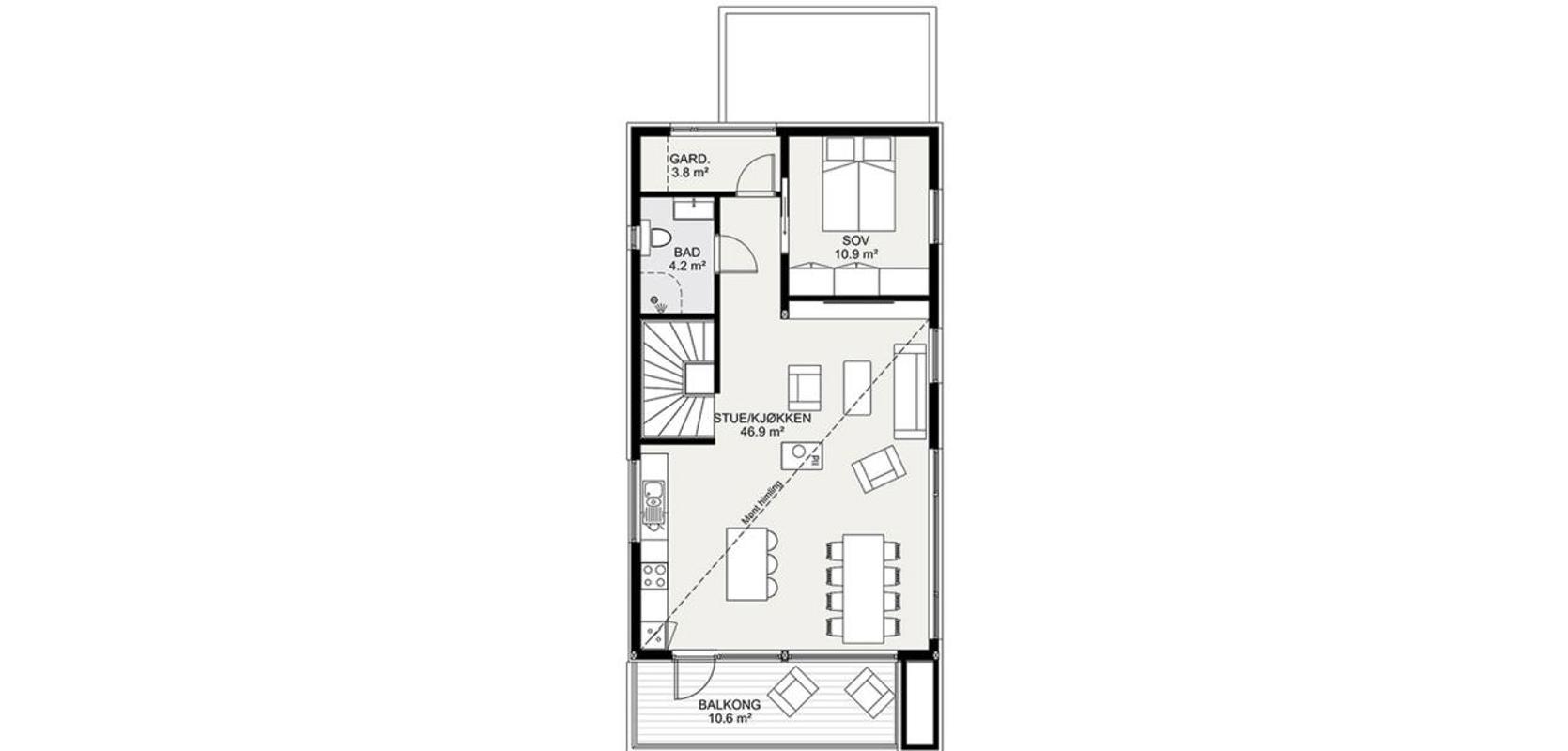 Huset er i stor grad mye lik den opprinnelige modellen Alta for skrå tomt.